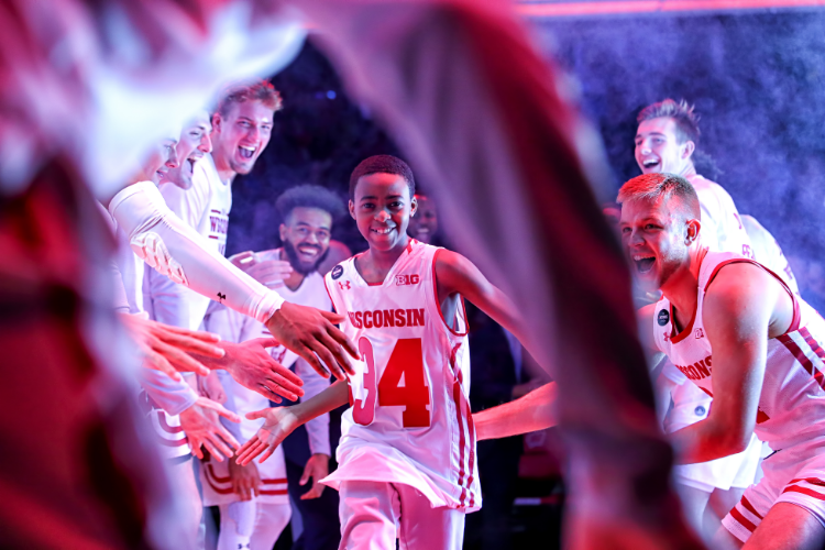 Jerell Moore was introduced as an honorary member of Wisconsin’s starting lineup for the 2019 season opener. (Photo courtesy of Wisconsin Athletics)